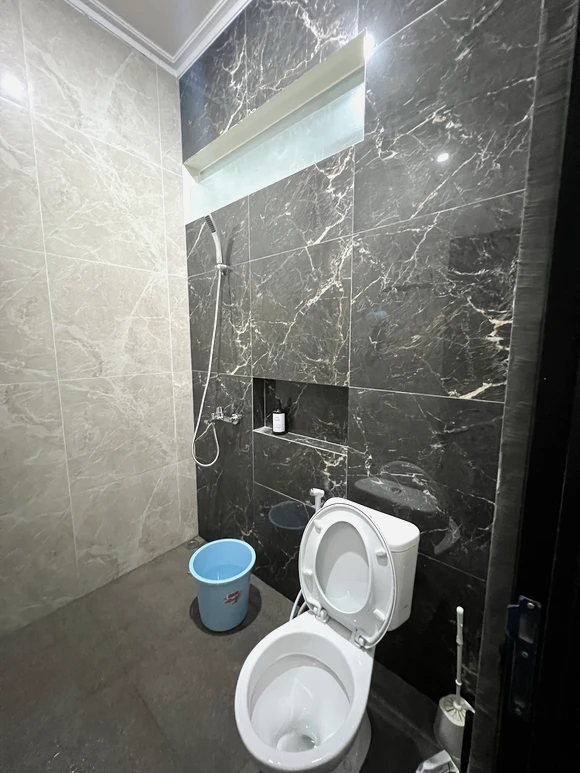 Ukuran Bed: 160×200 Ukuran Kamar: 2,75×2,9 ada Meja/Kursi/Mini Nakas, AC/Kipas Angin, Cermin