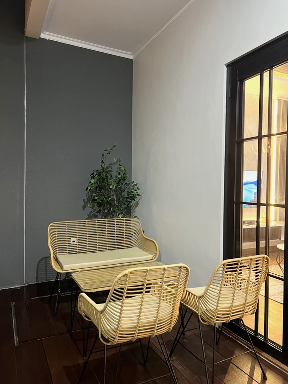 Ukuran Bed: 180×200 Ukuran Kamar: 4,2×2,85 Ada Meja/Kursi/Nakas, AC/Kipas Angin, Cermin