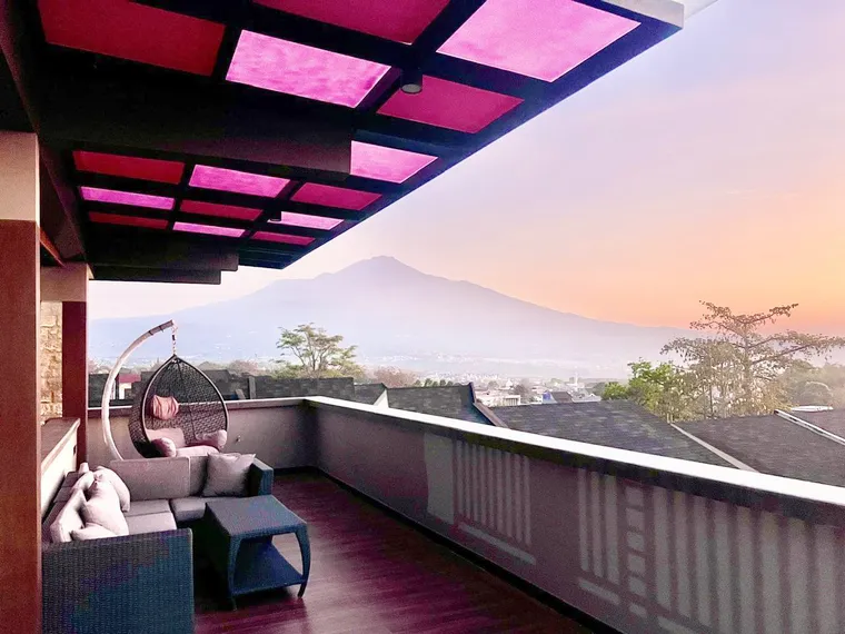 Ukuran Bed: 160×200 Ukuran Kamar: 5,5m x 3,5m Ada Balkon, Meja/Kursi, Kaca, Kamar Mandi Dalam, AC, TV